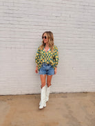 This versatile blouse will quickly become your go-to with it's gorgeous handblocked print in vibrant hues.  Throw on with jeans and sneakers everyday chic look, or go with a free-spirited boho vibe and pair with distressed cut-offs and sandals.