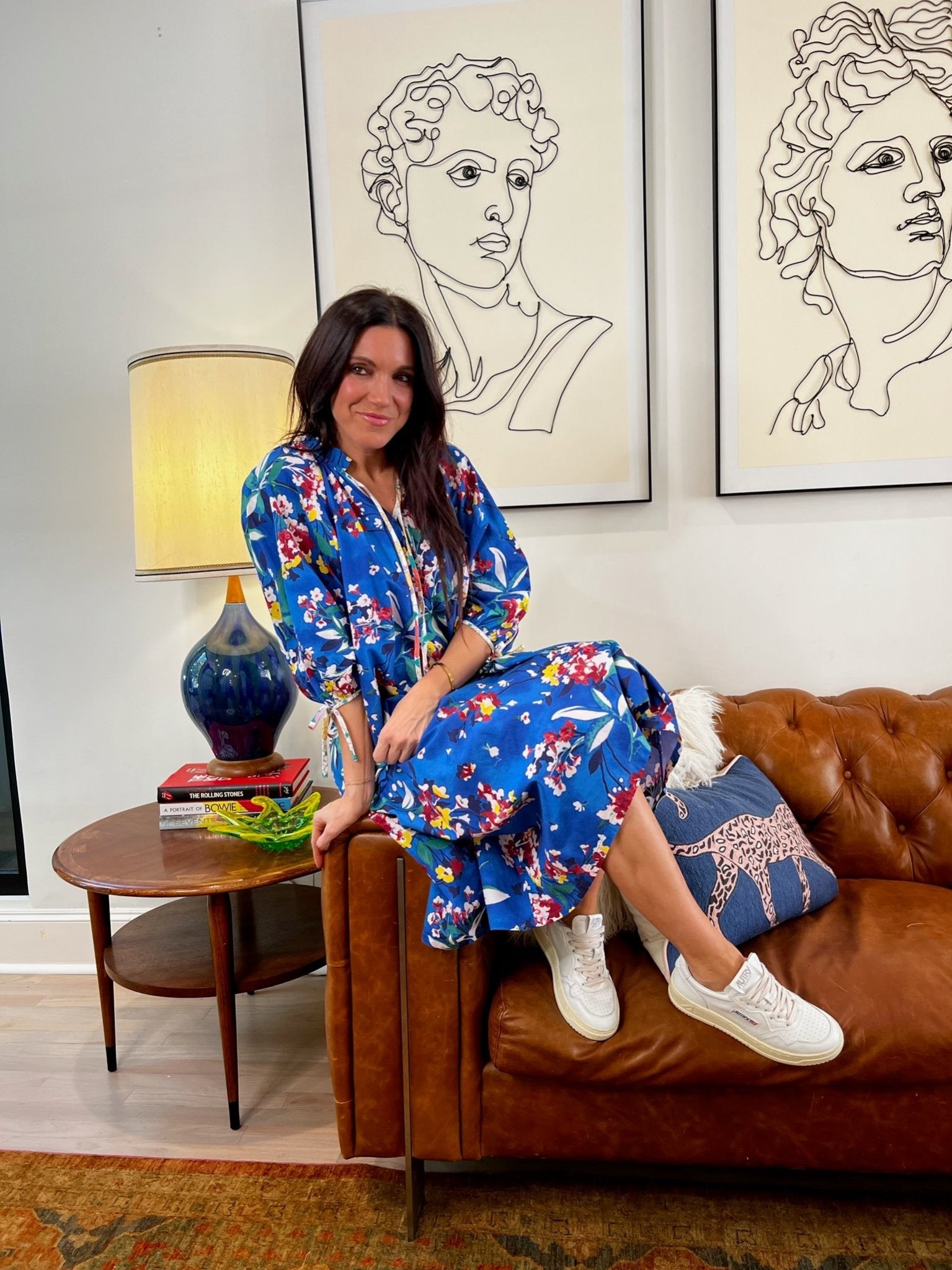 The perfect free-flowing, spring day dress. Ankle-length and made from 100% Cotton, v-neckline dress has an airy, feminine feel.
