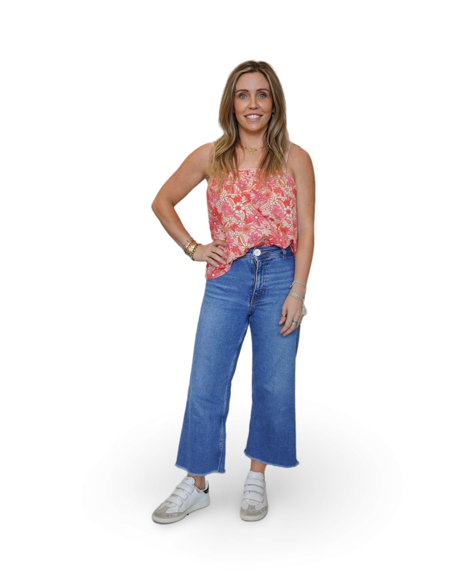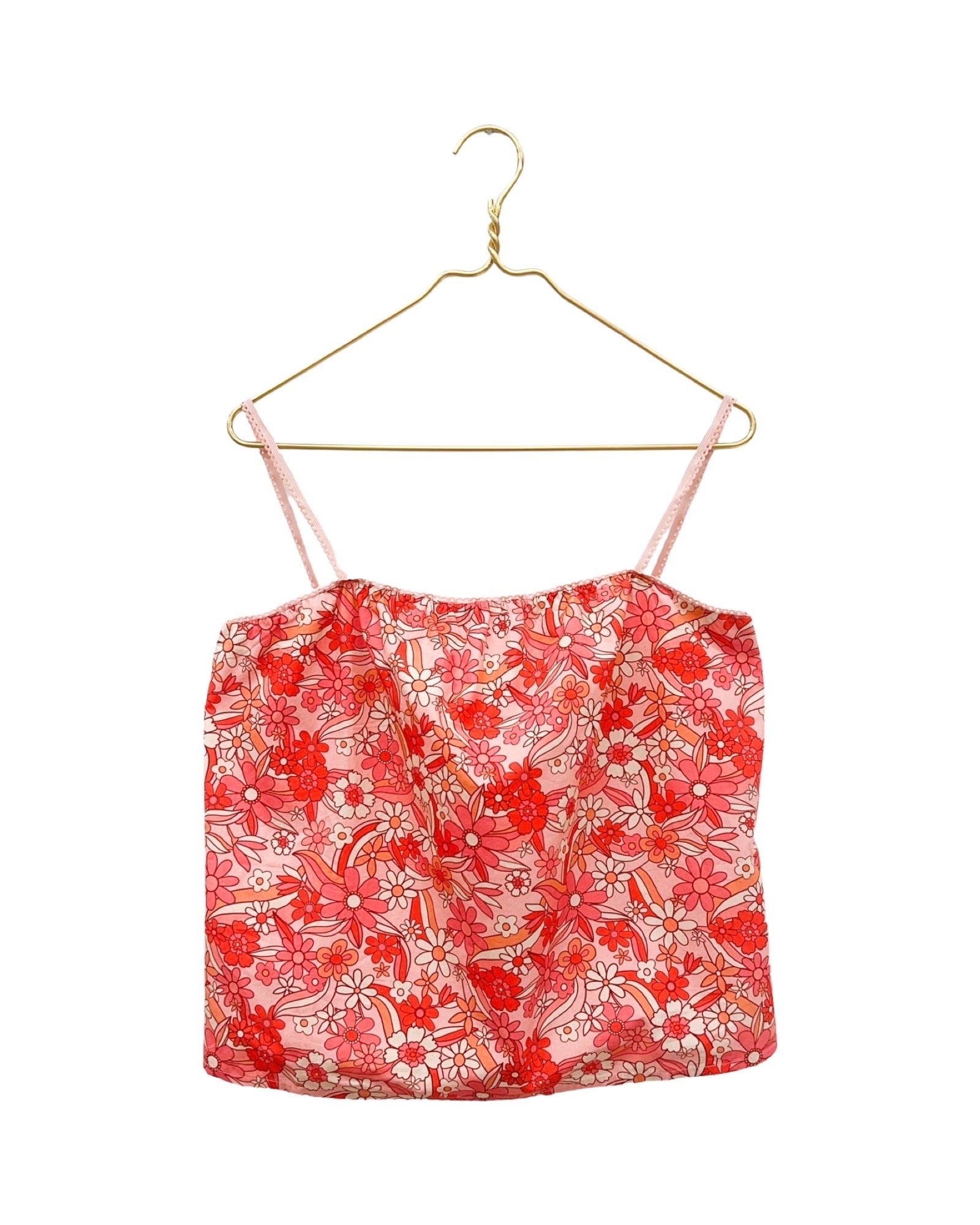 Colorful printed florals in an airy camisole style blouse.  Pair with cutoffs and sneakers for an everyday casual look or dress it up with sandals or wedges and your favorite denim, either way you're sure to stay cool and chic about town.