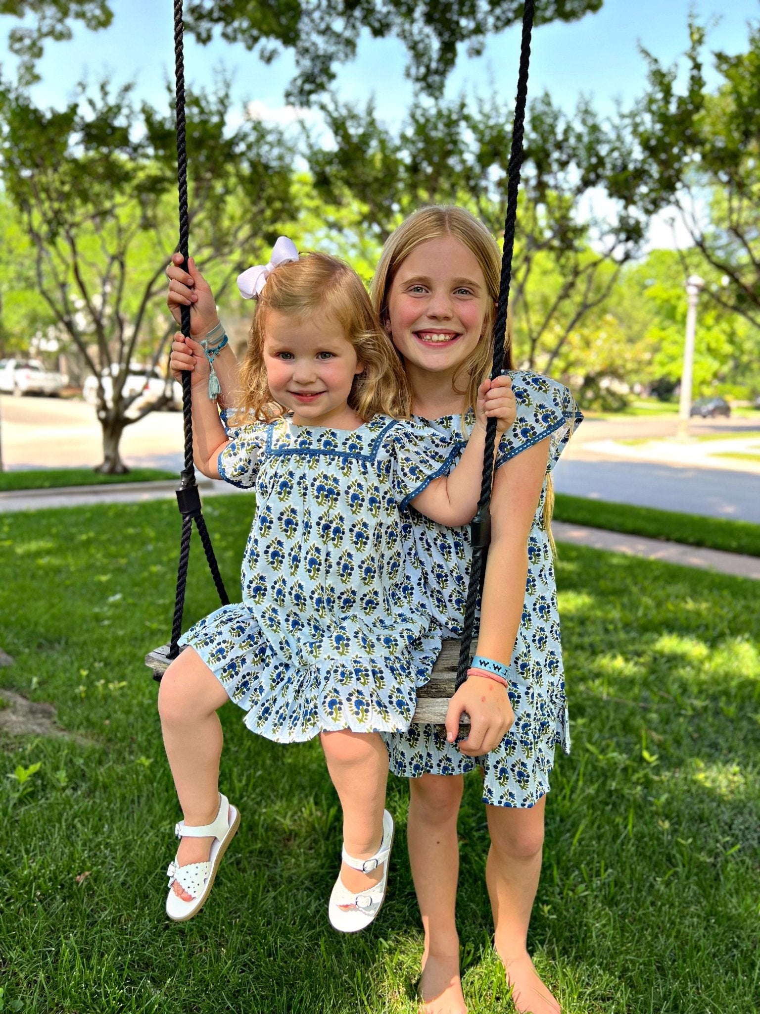 The perfect free-flowing, breezy, spring dress for your minis. Made from 100% Cotton with short sleeves and a ruffle trim.