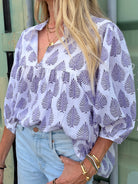 This versatile blouse will quickly become your go-to with it's gorgeous handblocked print in vibrant hues. Throw on with jeans and sneakers everyday chic look, or go with a free-spirited boho vibe and pair with distressed cut-offs and sandals.