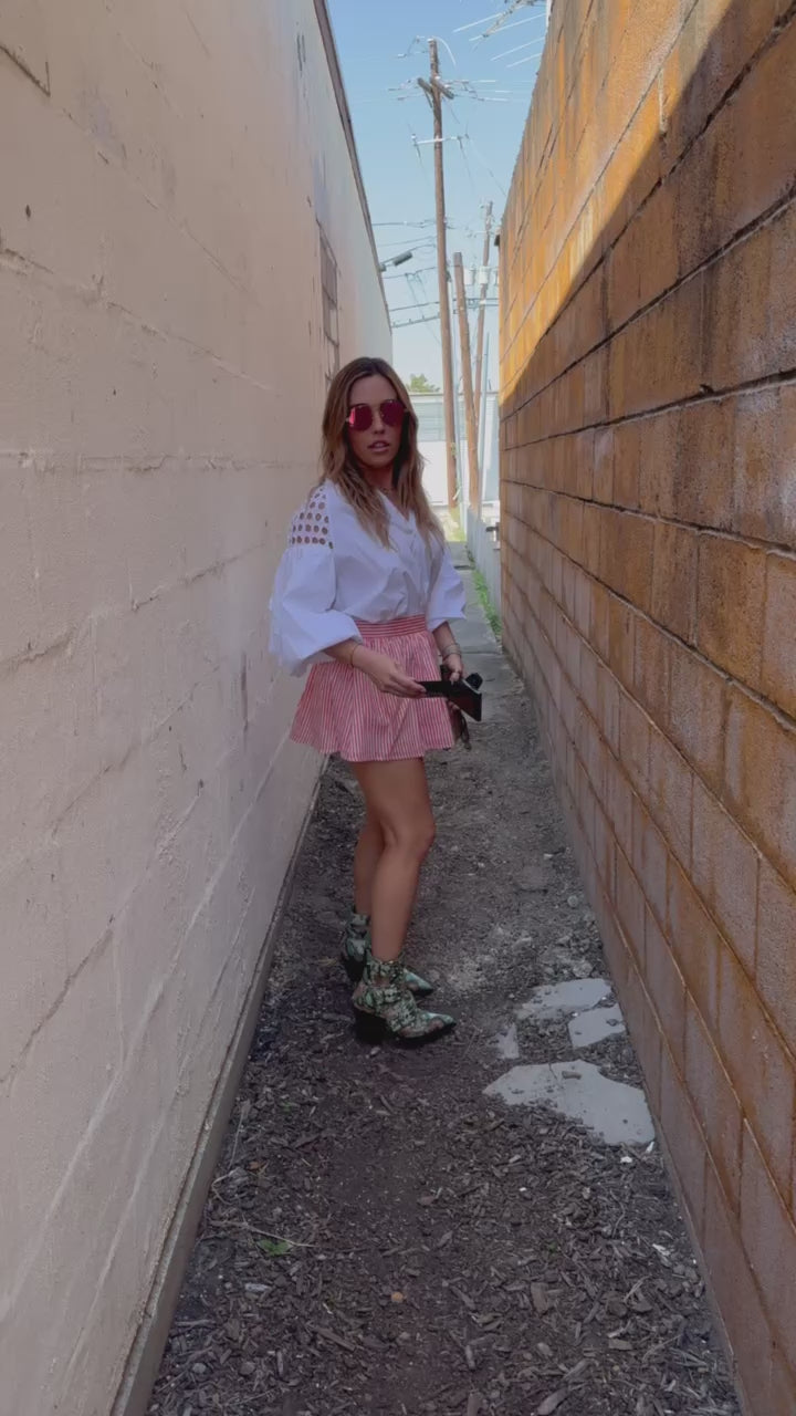 This versatile skirt will quickly become your go-to with its pinstripe print in vibrant hues.