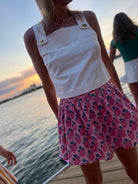 This versatile skirt will quickly become your go-to with it's gorgeous bold floral print in vibrant hues.
