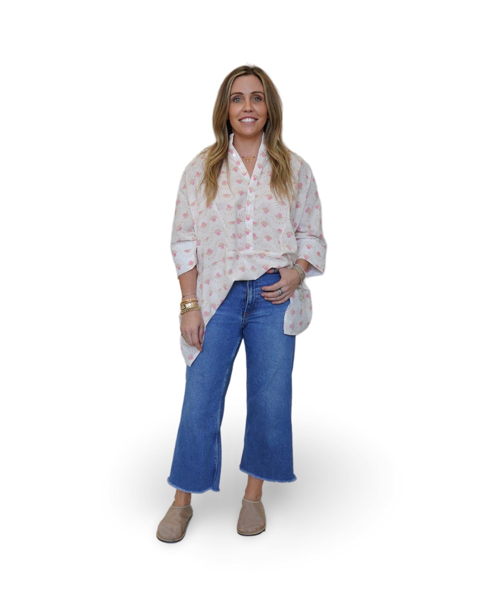 Our cotton tunic is made for movement, sunshine, and ease. Hand-block printed in India, each piece captures that effortless balance between comfort and charm — lightweight enough for the beach, yet polished enough for brunch. The breathable cotton keeps you cool while giving a soft, lived-in feel that gets better with every wash.