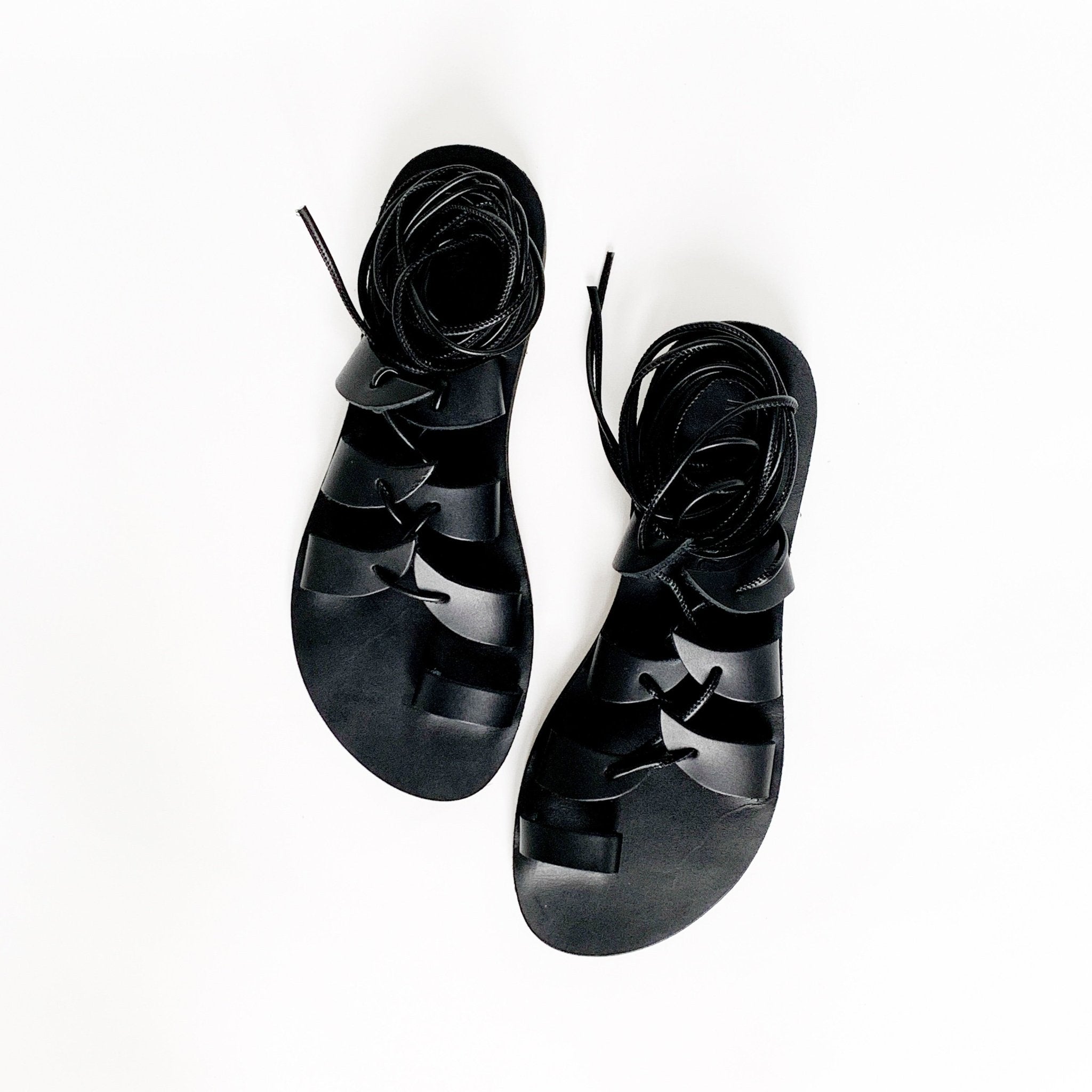 Classic and timeless our blacked-out Aster Greek gladiator sandal is the perfect way to add edge your style.